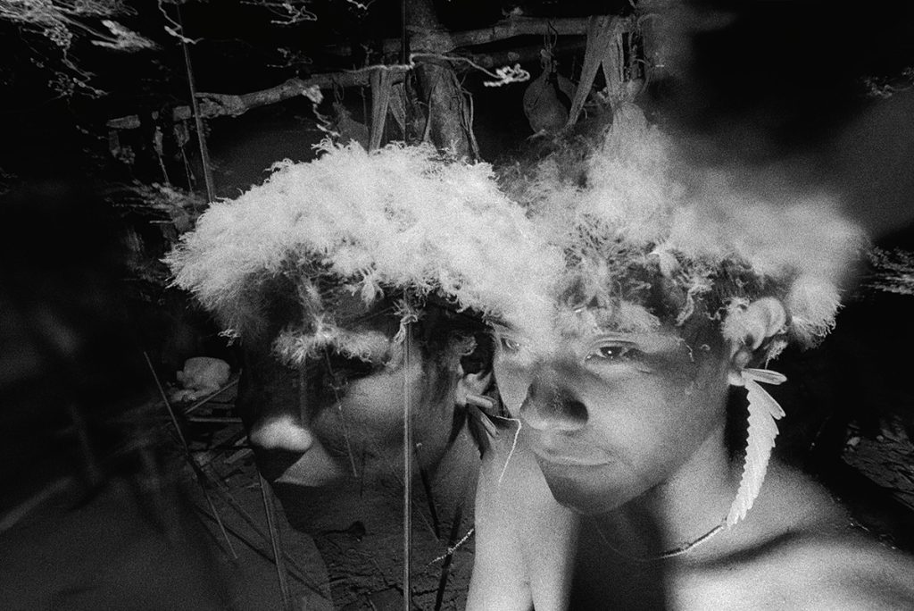 Claudia Andujar, born in Switzerland, began her photography career in 1955 in Brazil and has been in collaboration with the Yanomami people for over five decades. Andujar’s relationship with the Yanomami was established through her activism against Brazil’s military dictatorship in the 1970s and her friendship with Davi Kopenawa, a Yanomami shaman and leader. As the dictatorship implemented development projects that exploited natural resources in the Amazon and disrupted Yanomami communities, Andujar became an outspoken critic, founding the Commisao Pro-Yanomami (CCPY) in 1978. She dedicated herself to defending the Yanomami’s territorial and cultural rights, and after 14 years, the CCPY succeeded in obtaining demarcation of Yanomami territory.
