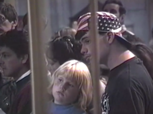 Couple in the Cage satirically critiques the Western gaze and historical commodification of indigenous cultures through performance art. The traveling “exhibit” features two performers who are “authentic Guantinauis” highlighting the absurdity of colonialist practices that treat non-Western people as objects of curiosity. A majority of the film focuses on the audience’s reaction to the performance. Their reactions vary greatly from curiosity to discomfort, with one person even asking “What do they do on their day off?” reflecting a deeply rooted capitalist/ Western mindset. One woman describes the exhibit as a “slap in the face” and then becomes a part of the artist’s performance when the camera clicks in her face. Making her a subject of the same objectifying gaze she critiques. The interplay of authenticity and performance raises questions of who controls the narrative and identities are presented and reflected back to the audience through performance.