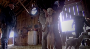 Figure 10: The visible relationship between farmer and sheep—how close he must get to it in order to shear it and care for it…and how connective (and parent-like) this work is as a result.