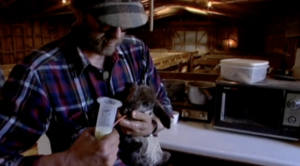 Perhaps this is also why Castaing and Barbash focus so much on the parent-like relationship that occurs between sheep and farmer, especially in the first few days of a sheep’s life (Figure 10). We see this dependency play out in several scenes, such as when the farmers actually nurses a lamb back to life. In many ways, the birth of these lambs—their very coming into the world—is mediated by humans, who almost play a mother-like role to the lamb, which the audience connects with more easily as a result of its baby-like qualities.