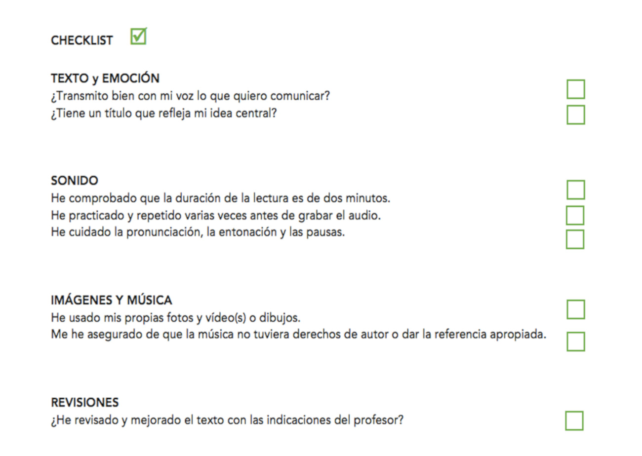 Incorporate all feedback and suggested corrections on your digital story. Complete the Self-checklist (see below).