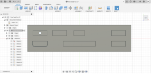 As you can see in these images, our initial model was mostly just a black box sketch so that we could map out where we wanted the holds to be. The initial design included different depth, size, and angle for each hold for a diverse rock climbing workout.