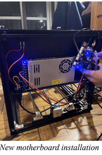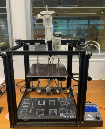This semester, Team Princeton was able to 3D print and assemble the resin extruder, assemble the base Creality Ender 5 printer, hack the printer and install new firmware, rewire the printer with a new motherboard, and install a new stepper motor to enable the dual extrusion. We used a lot of hand tools to assemble the printer, and we used a soldering iron to switch the polarity of the Nibble Extruder motor. At the inception of the project, in order to print something, the G-code had to be written manually. The new firmware on the printer allows us to execute prints with both motors more easily.
