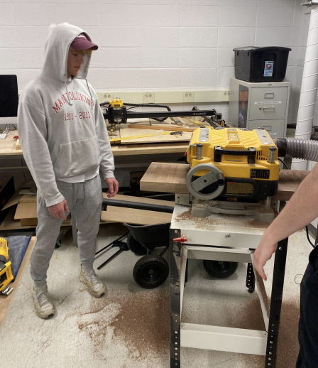 Next, we then planed the wood using the planer in the maker space. This took out impurities in the wood on each side that we would not want to show up in our spoons or cutting board. (Figure 2.)