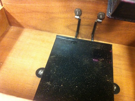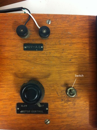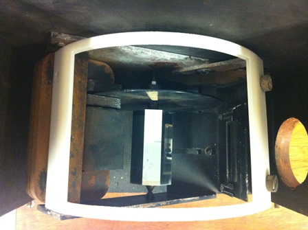 Figure 14 Viewing box (front view). It contains a rotating octagonal mirror driven by a shaded-pole motor, a piece of cylindrical glass and a screen holder holding a piece of translucent paper screen (not shown).