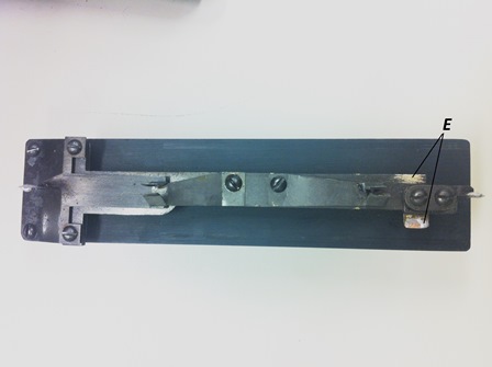Figure 11 String holder (top view). E: Contacts between the holder and potentiometer.